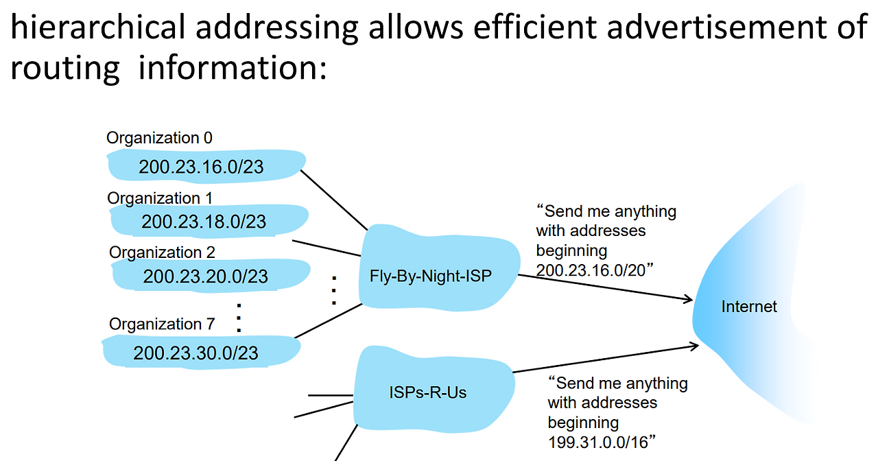- 쉽게 말하면, Hierarchical Addressing이 구현되는 셈이다. 그리고 이는 Routing을 하는데 큰 도움이 된다.