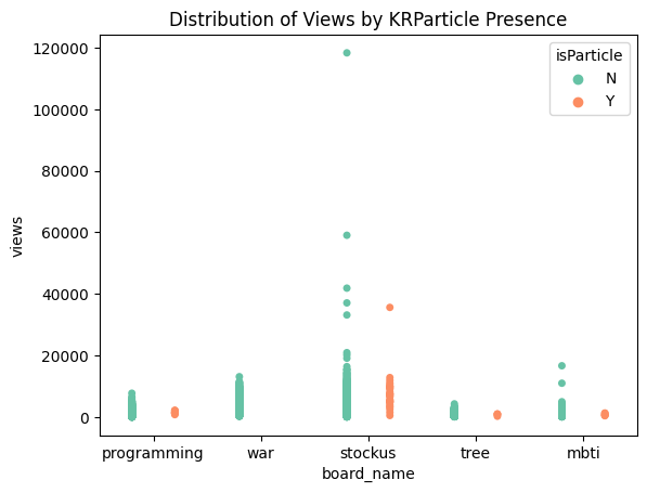 Text(0.5, 1.0, 'Distribution of Views by KRParticle Presence')