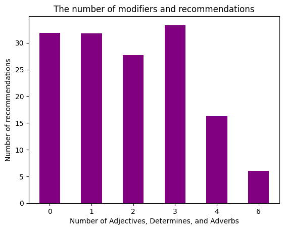 Text(0.5, 0, 'Number of Adjectives, Determines, and Adverbs')
