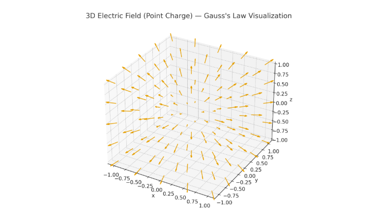 점전하를 하나 놓으면, 공간 전체에서 전기장이 뻗어나간다. 그리고 전기장에서의 가우스 법칙은 이에 대해서 간단하게 설명하고 있다. 수학적으로는 뭔 소리냐면...