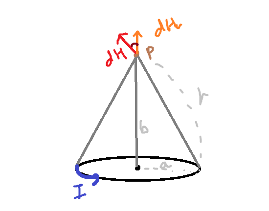 이 됩니다. 또한 원형 코일의 중심은 b=0이므로 위 공식에 b=0를 적절히 박아주면 됩니다. 더불어 원호 모양이 나올 때가 있는데, 이럴때는 호의 길이 구하듯이 각도/2pi를 적절히 곱해주면 답이 나옵니다.