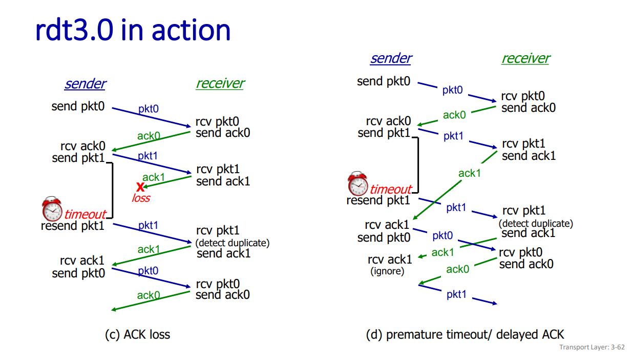 rdt 3.0 : 비트 에러와 패킷 로스가 발생할 수 있는 채널에서의 신뢰성 있는 전송