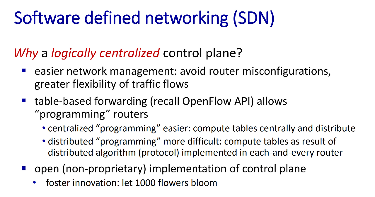 - 이는 네트워크 관리가 쉽고, Table을 조정하면서 라우터를 마치 "프로그래밍" 할 수 있게 해준다.
