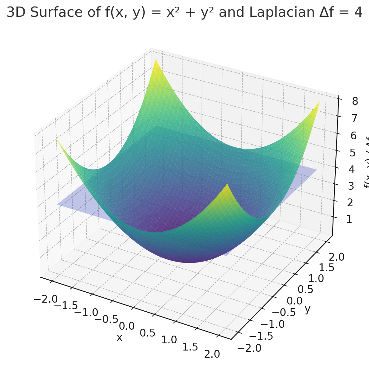 유클리드 공간에서 두 번 미분할 수 있는 스칼라 함수 f가 있다 치면, 라플라시안은 f에 대한 그레디언트의 발산이다.